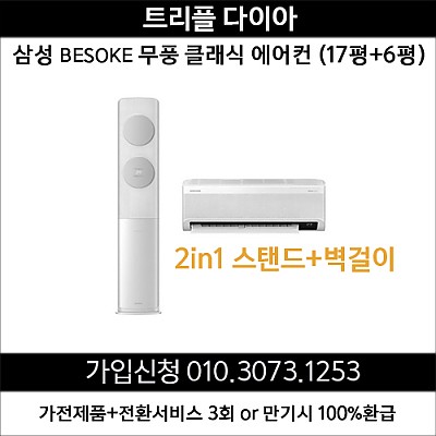 삼성 BESPOKE 무풍 클래식 에어컨 AF17B7538TZRS (스탠드17평 +벽걸이 6평) 더리본 상조가입 가전제품