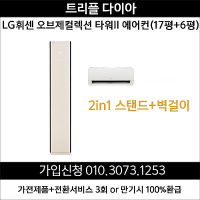 LG 휘센 오브제컬렉션 타워II 2in1에어컨 FQ17ET1BC2 (스탠드17평+벽걸이6평) 더리본상조 가입 가전제품